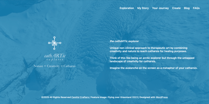 Sharing cathARTic explorer project at https://catharticexplorer.wordpress.com also found under the “Course” tab above. This therapeutic arts project will be a work in progress. I am starting to move examples into the site. I have also added an extensive “My Story” page outlining my own path and why/how this project came about. Eventually I will have learning modules both free and paid along with real-time therapeutic art services.