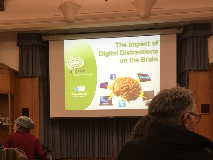 These notes were taken at Royal Roads Universityโ€™s free talk on digital distractions given by Paul Mohapel, PhD (Psych.) in September of 2019. I transcribed the presentation into a bullet list for easiest reading. There was much more information presented but this is what I jotted down. I highly recommend attending his next seminar if you can access it.